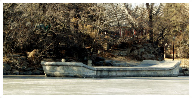 The construction of the Stone Boat was totally decided by He Shen himself. It was an imitation of The Clear YanFang in the Summer Palace. In fact, it was forbidden for a minister to do so according to the law of that day. But He Shen was not afraid at all. Becuase he was exempted from punishment and went on with his career as a corrupted minister. When his son married with a princess, it was possible for He Shen to enjoy this with safety.